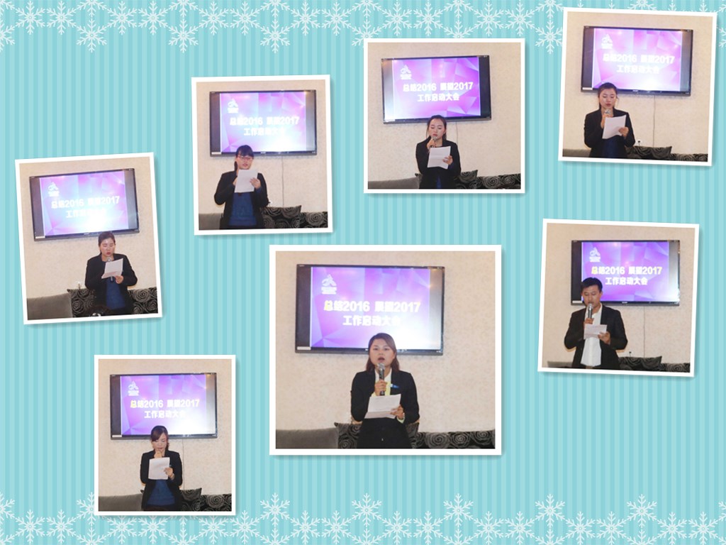各部門高管及全體員工對2016年的工作做了深刻地總結(jié),并就個自在2016年工作中取得的成績、受到的啟發(fā),工作上的失誤總結(jié)經(jīng)驗教訓,暢談了自己的成長目標和人生愿景,提出了自己在2017年年度的發(fā)展目標。